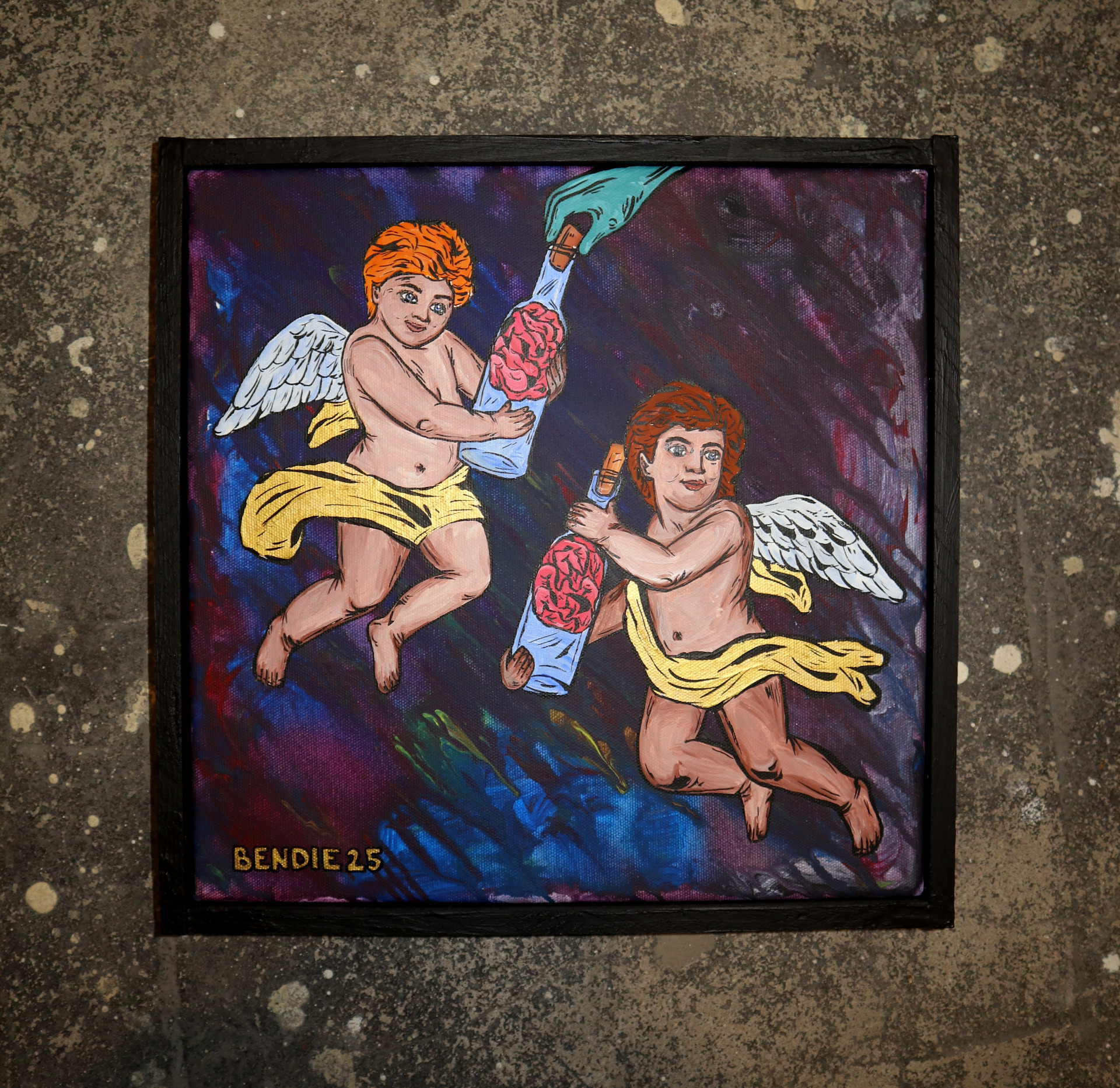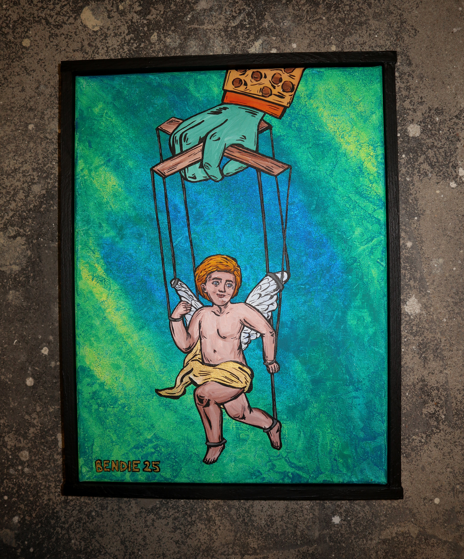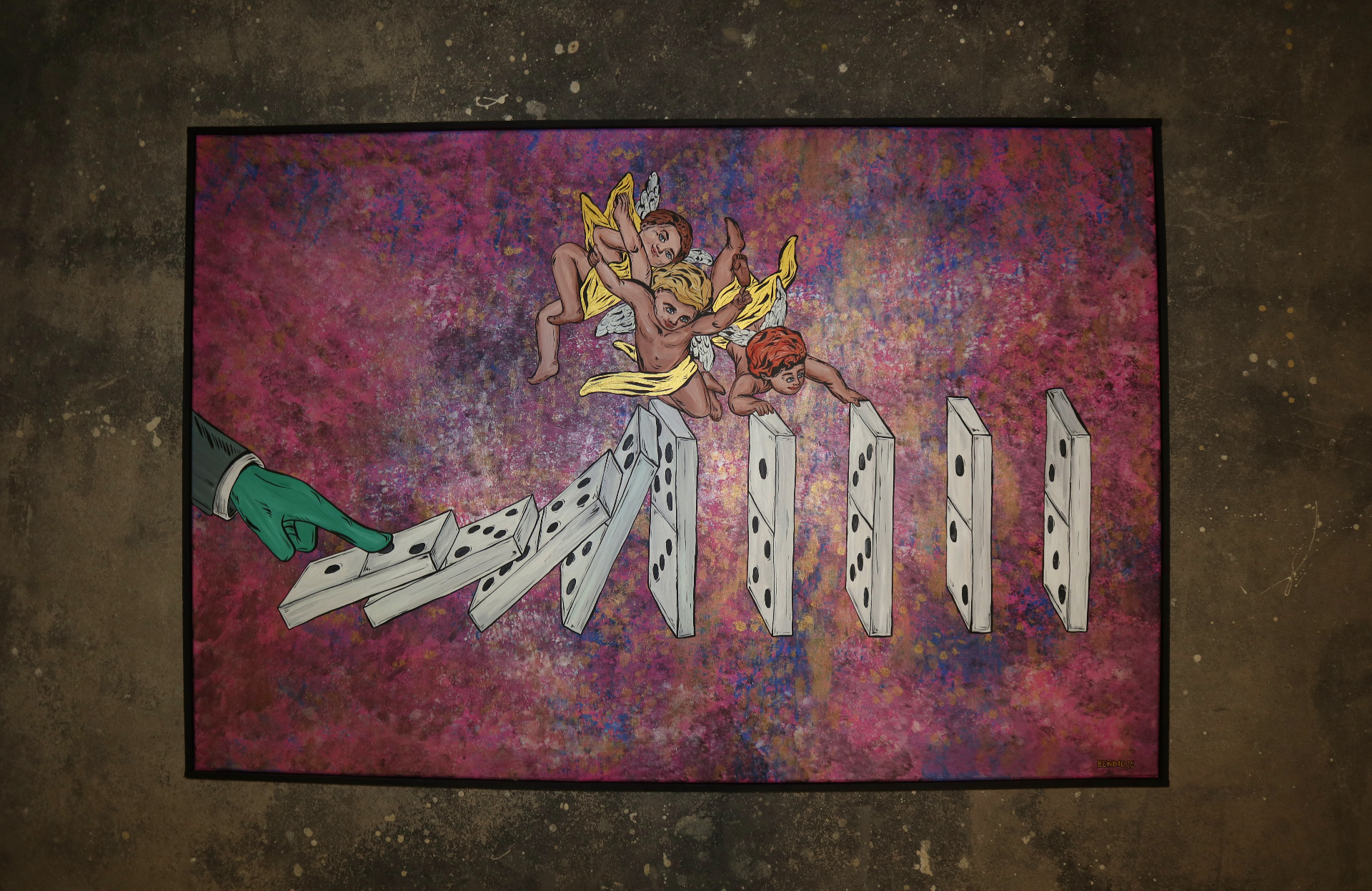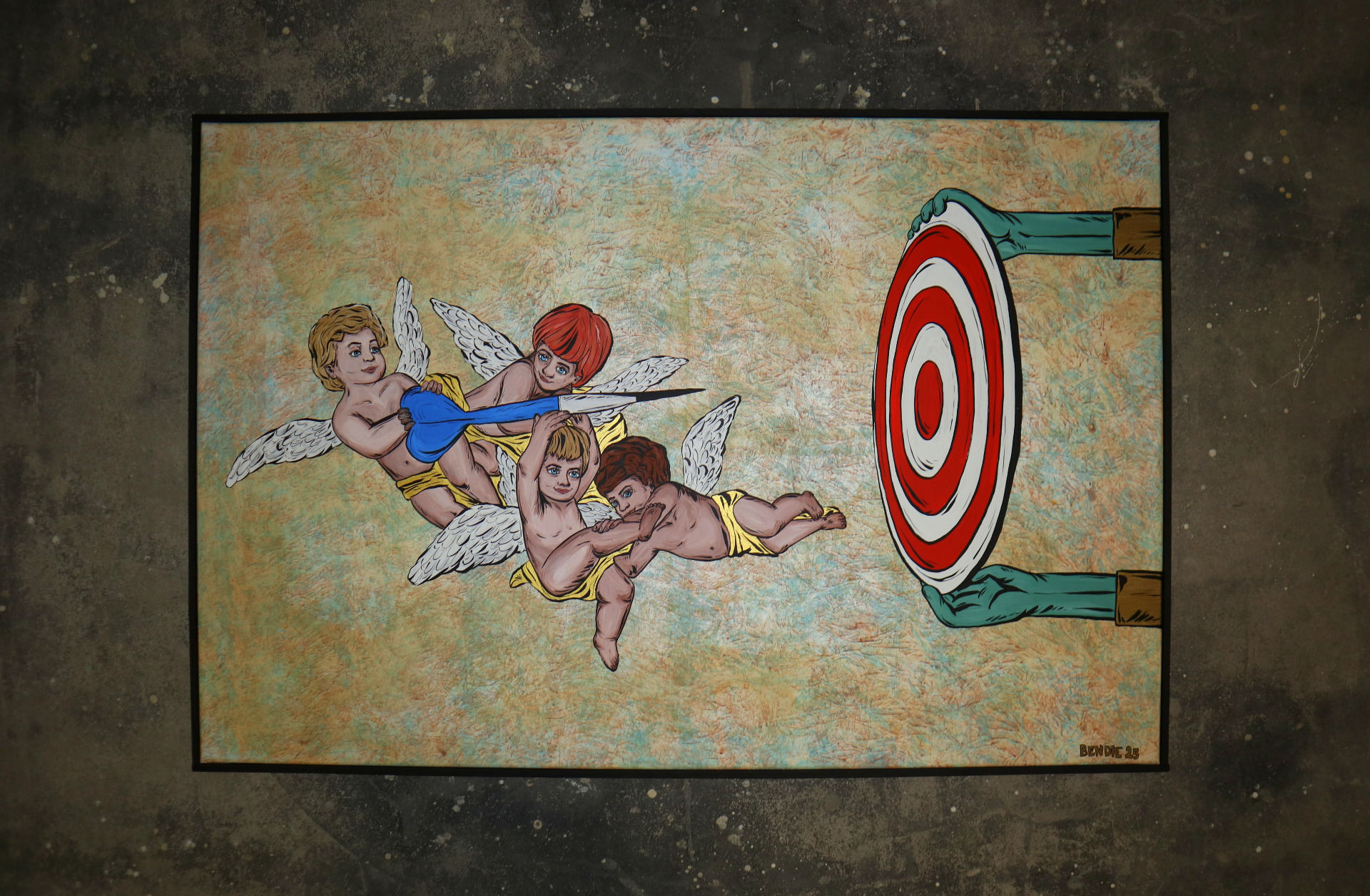 The series Evil Hand was created in 2025 and works with the recurring symbol of the green hand as the embodiment of evil. This element enters individual scenes inconspicuously but persistently. The green hand intervenes in the events, disrupts the balance and harms the angels. The angels here do not appear as untouchable beings, but as fragile figures of good exposed to external pressure. The series focuses on the idea that evil does not have to be ostentatious or violent, it does not attack openly, does not scream or destroy immediately.