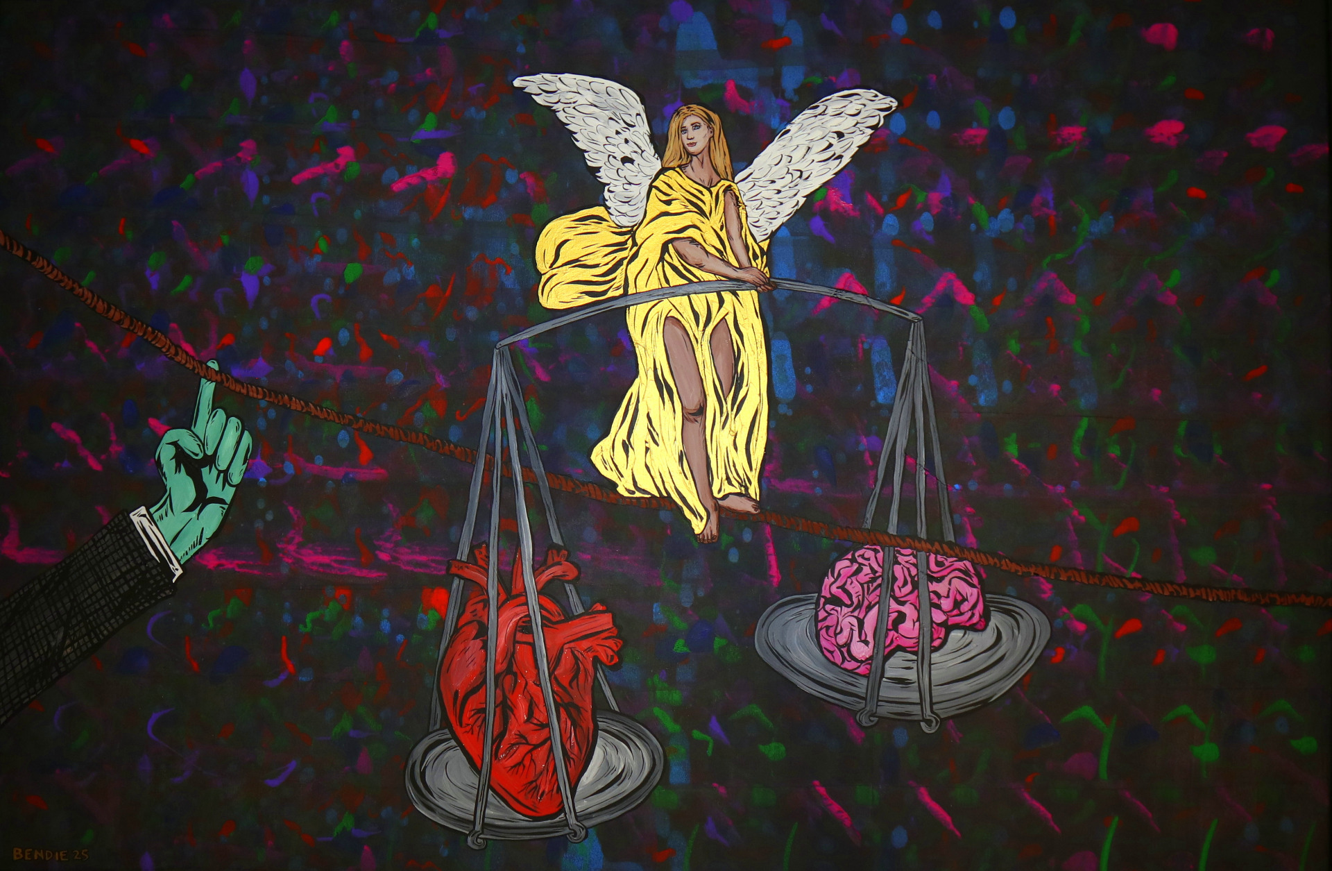 A painting titled Bendie. The name Bendie was created in 2024 as a result of the combination of talents of two people – Klaudie Švrčková and Benedikt Heczko.