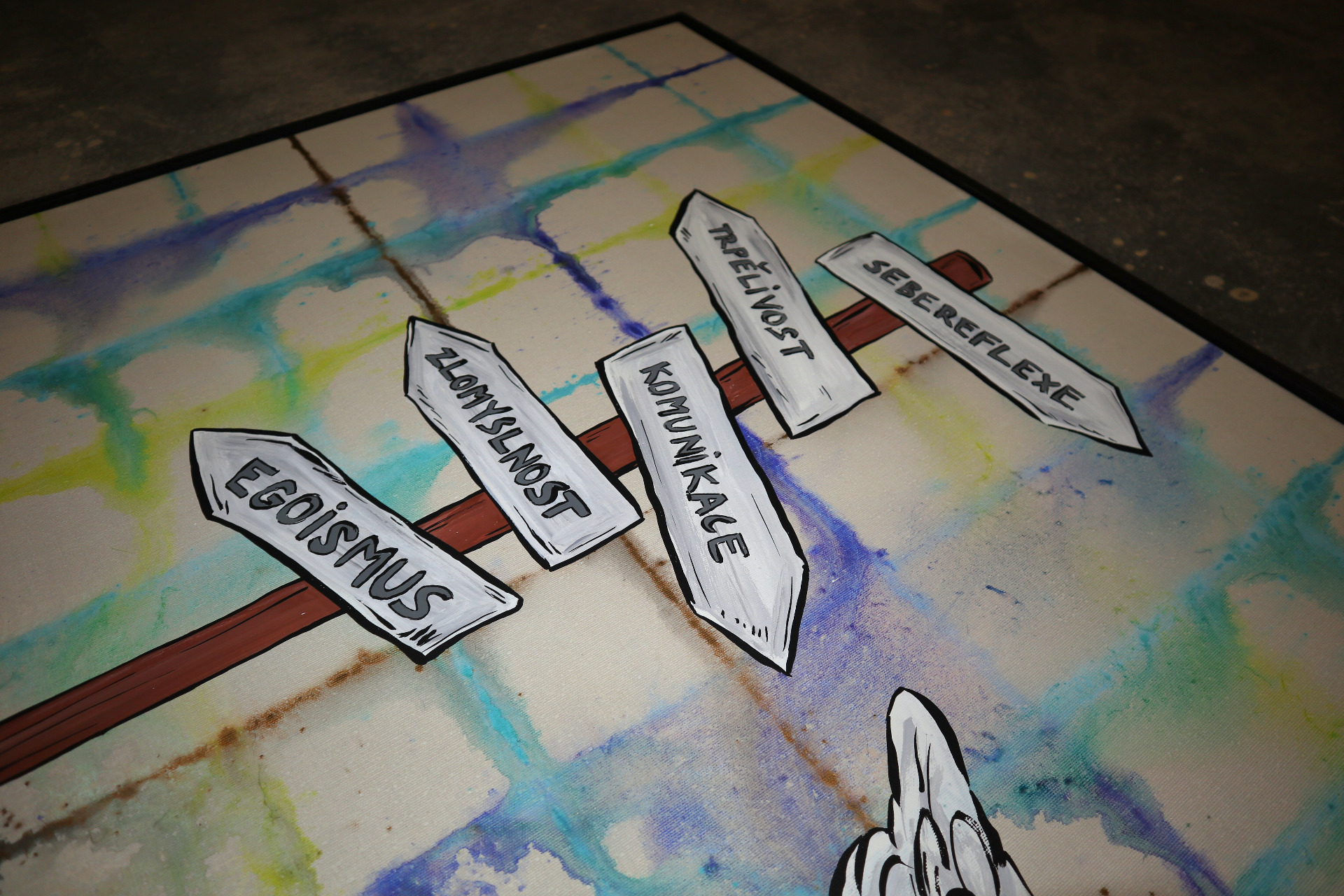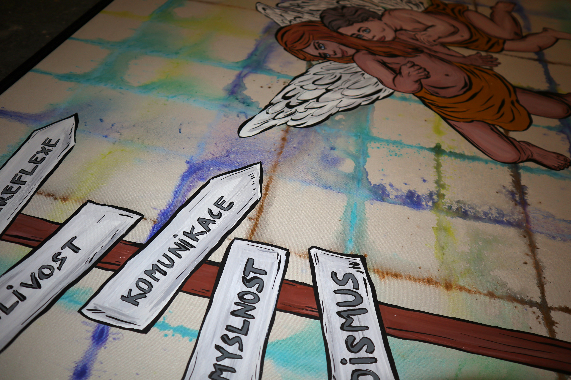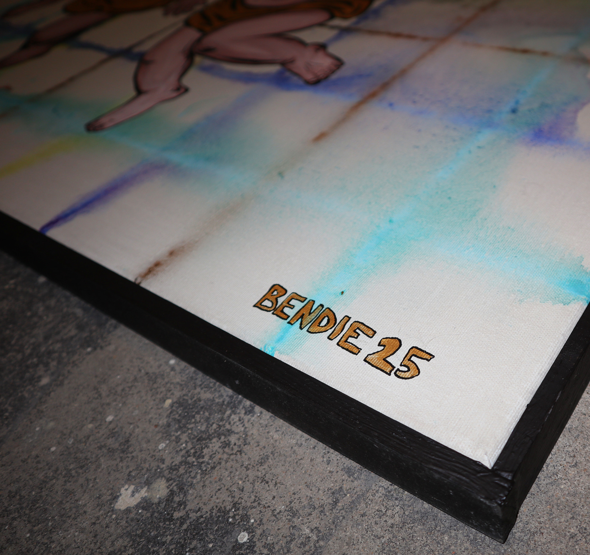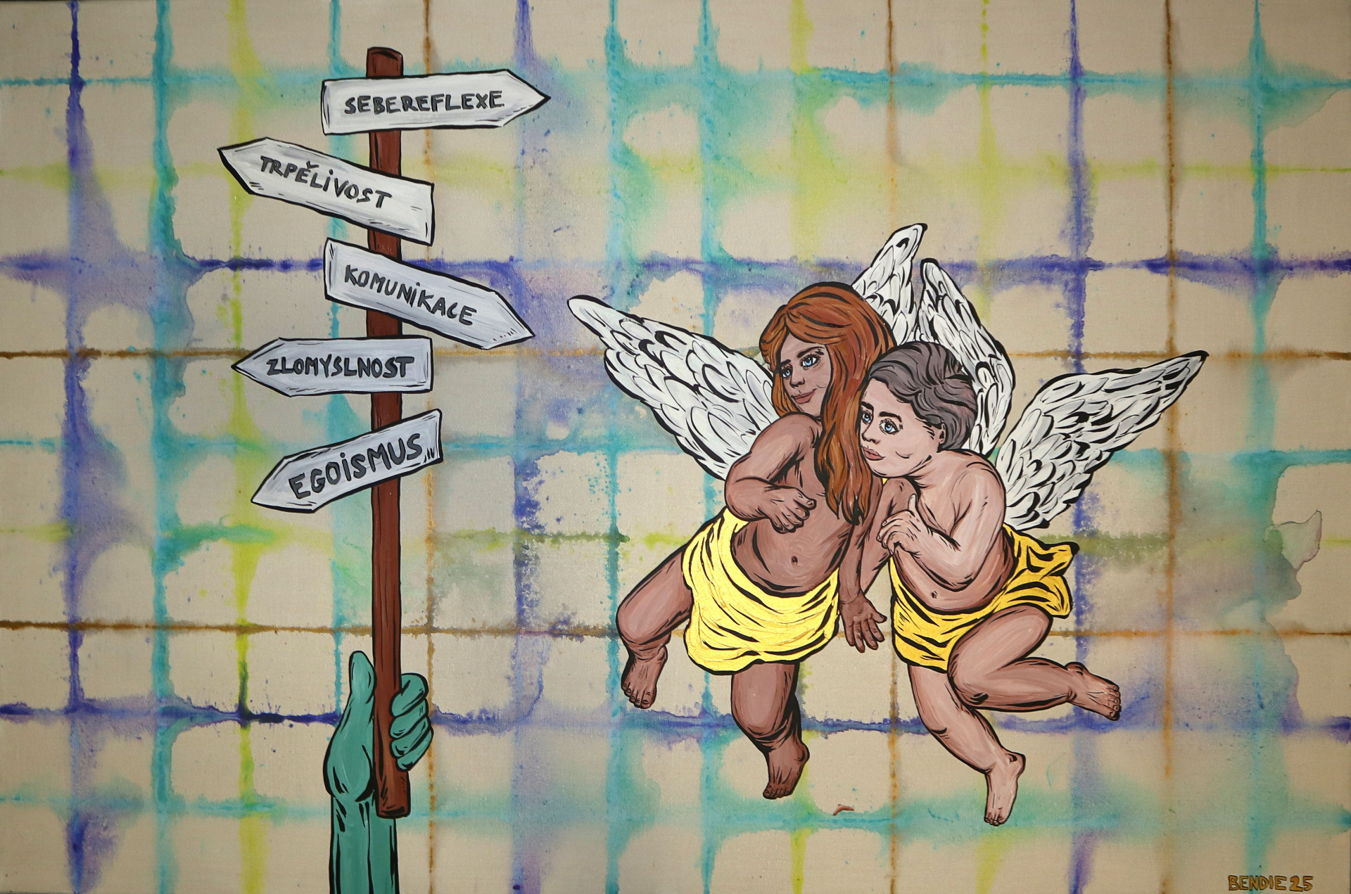 A painting titled Bendie. The name Bendie was created in 2024 as a result of the combination of talents of two people – Klaudie Švrčková and Benedikt Heczko.