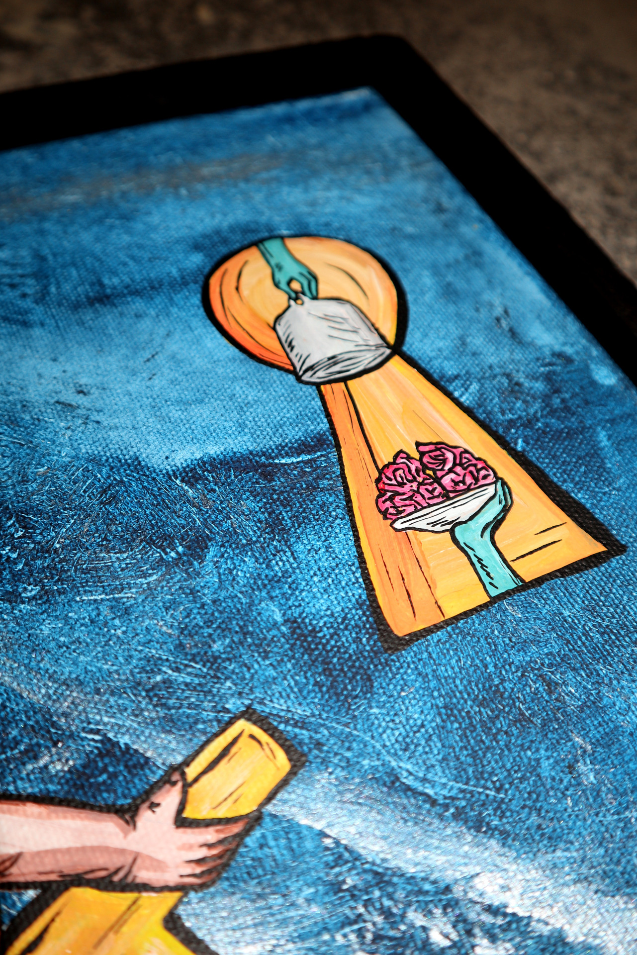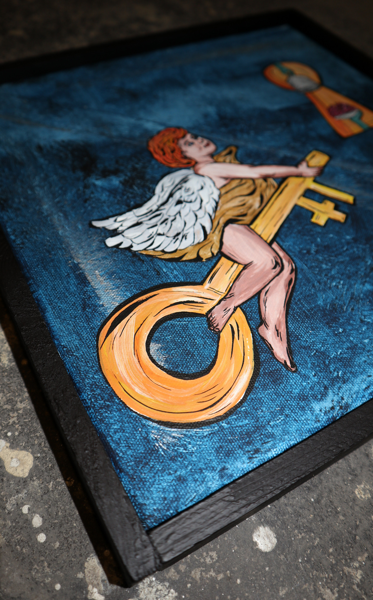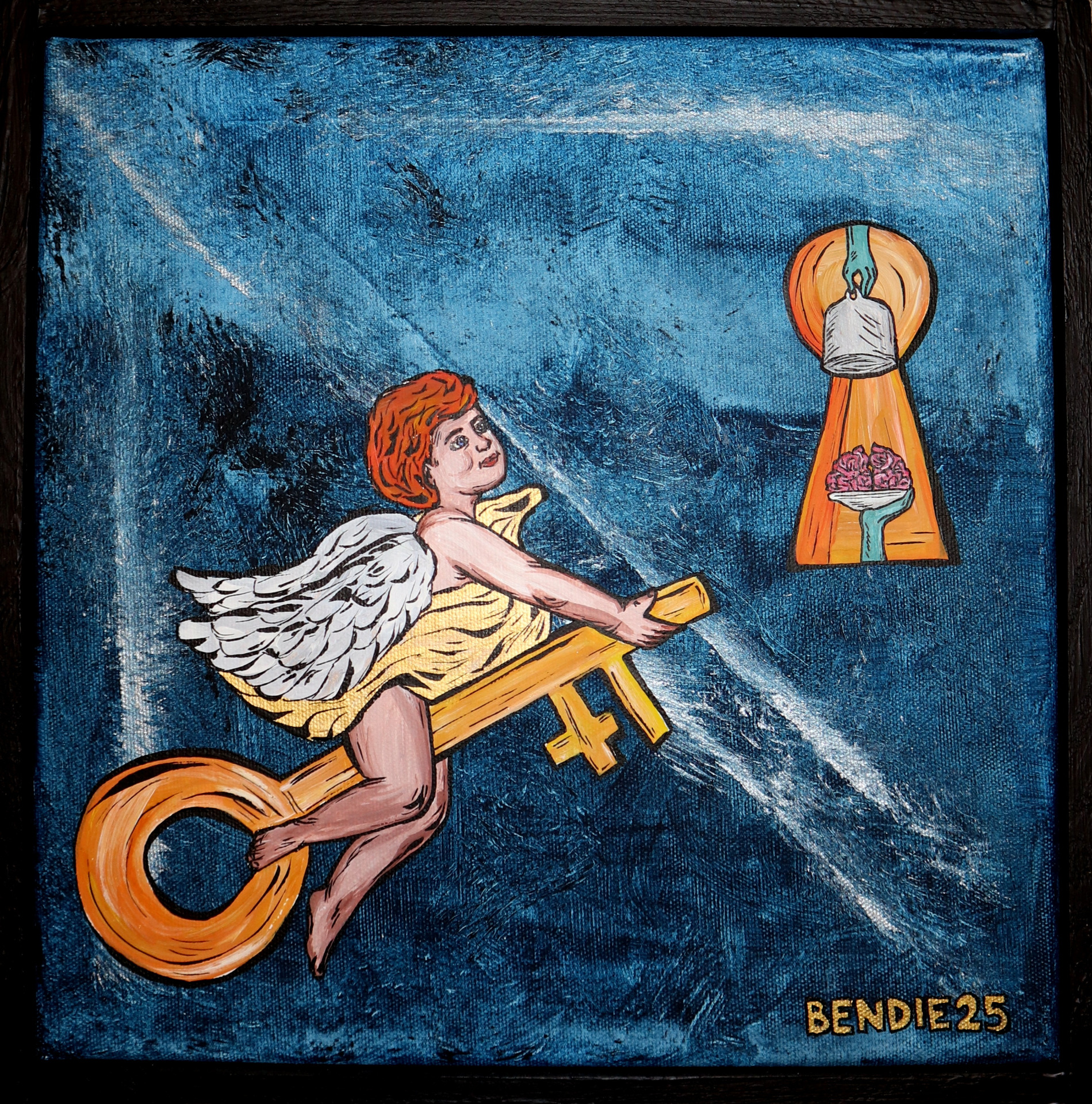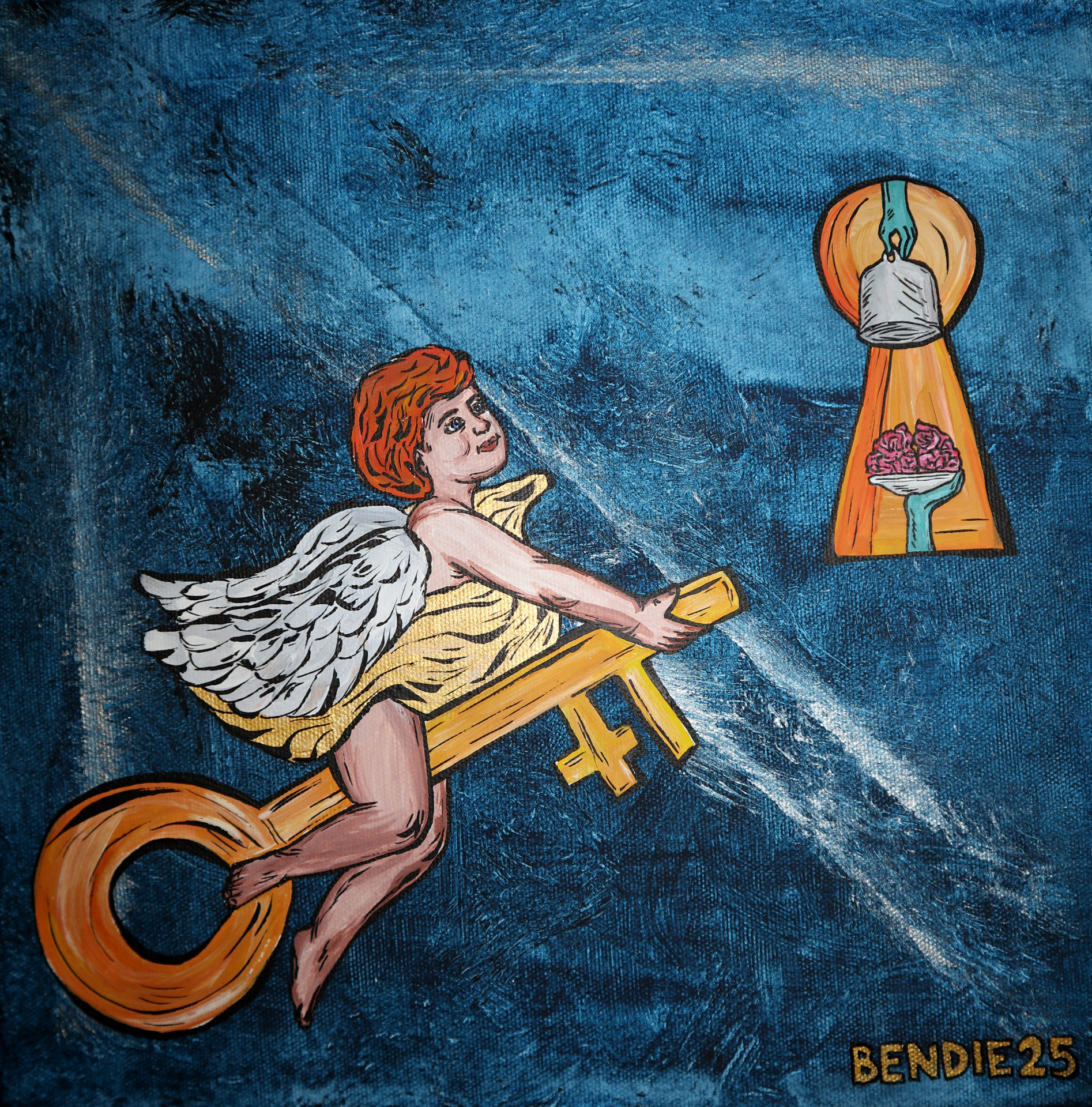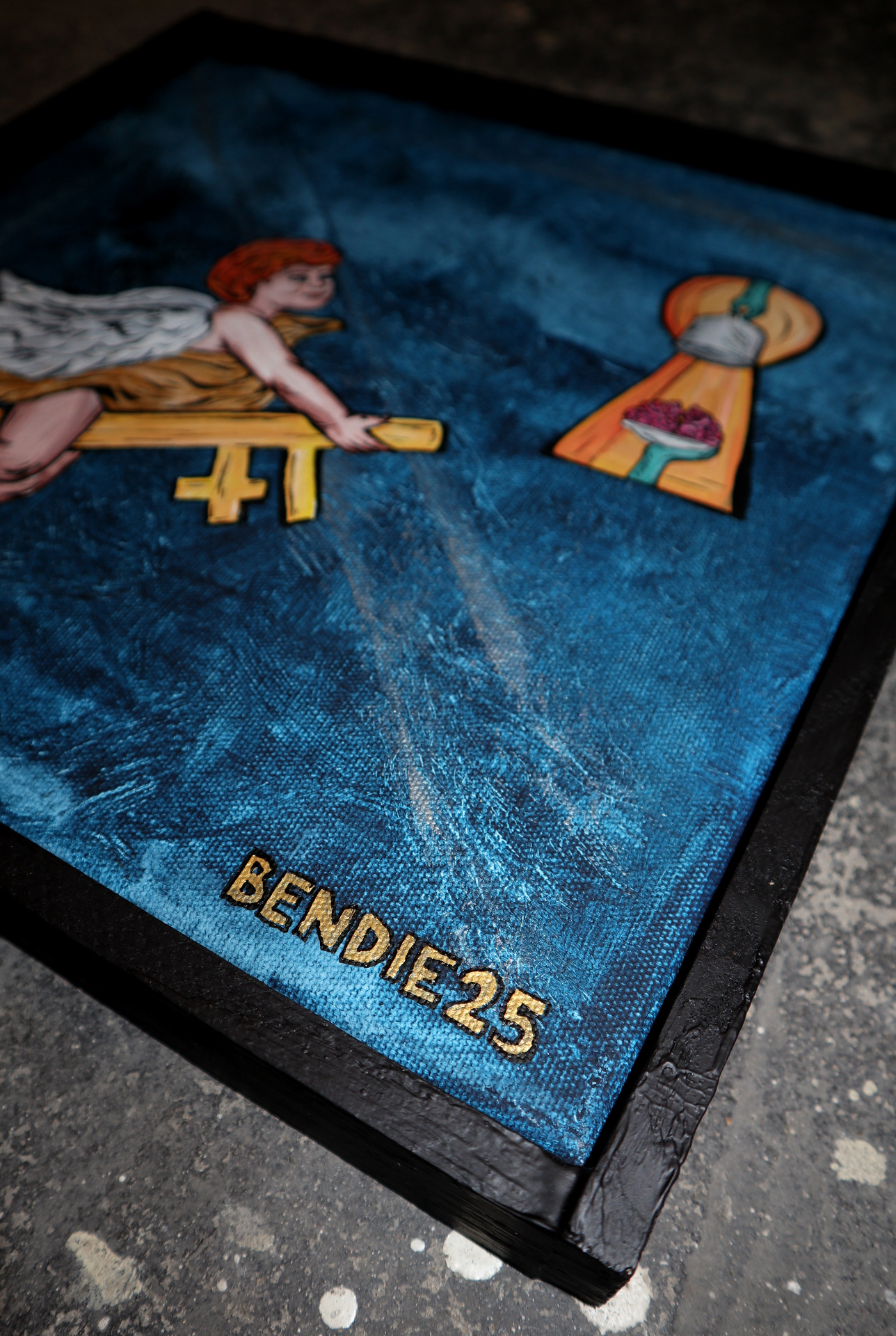 A painting titled Bendie. The name Bendie was created in 2024 as a result of the combination of talents of two people – Klaudie Švrčková and Benedikt Heczko.