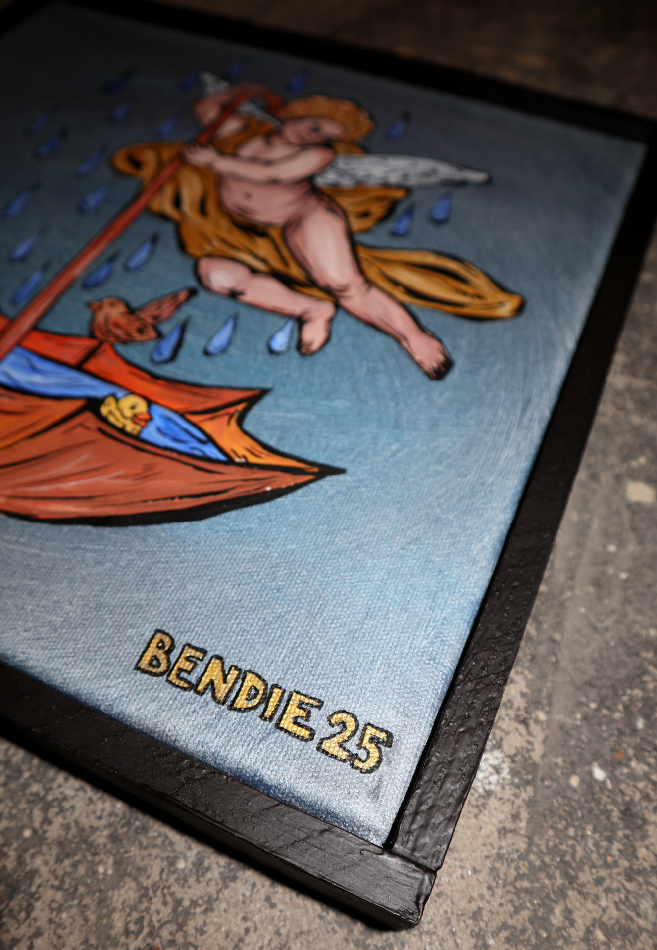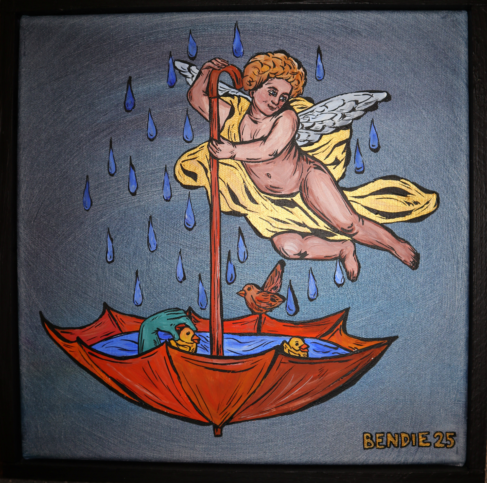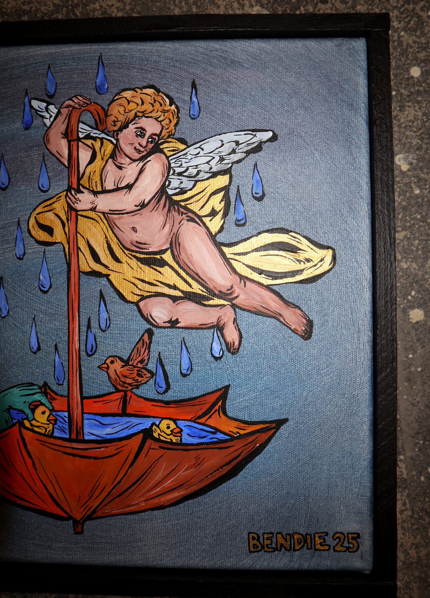 A painting titled Bendie. The name Bendie was created in 2024 as a result of the combination of talents of two people – Klaudie Švrčková and Benedikt Heczko.