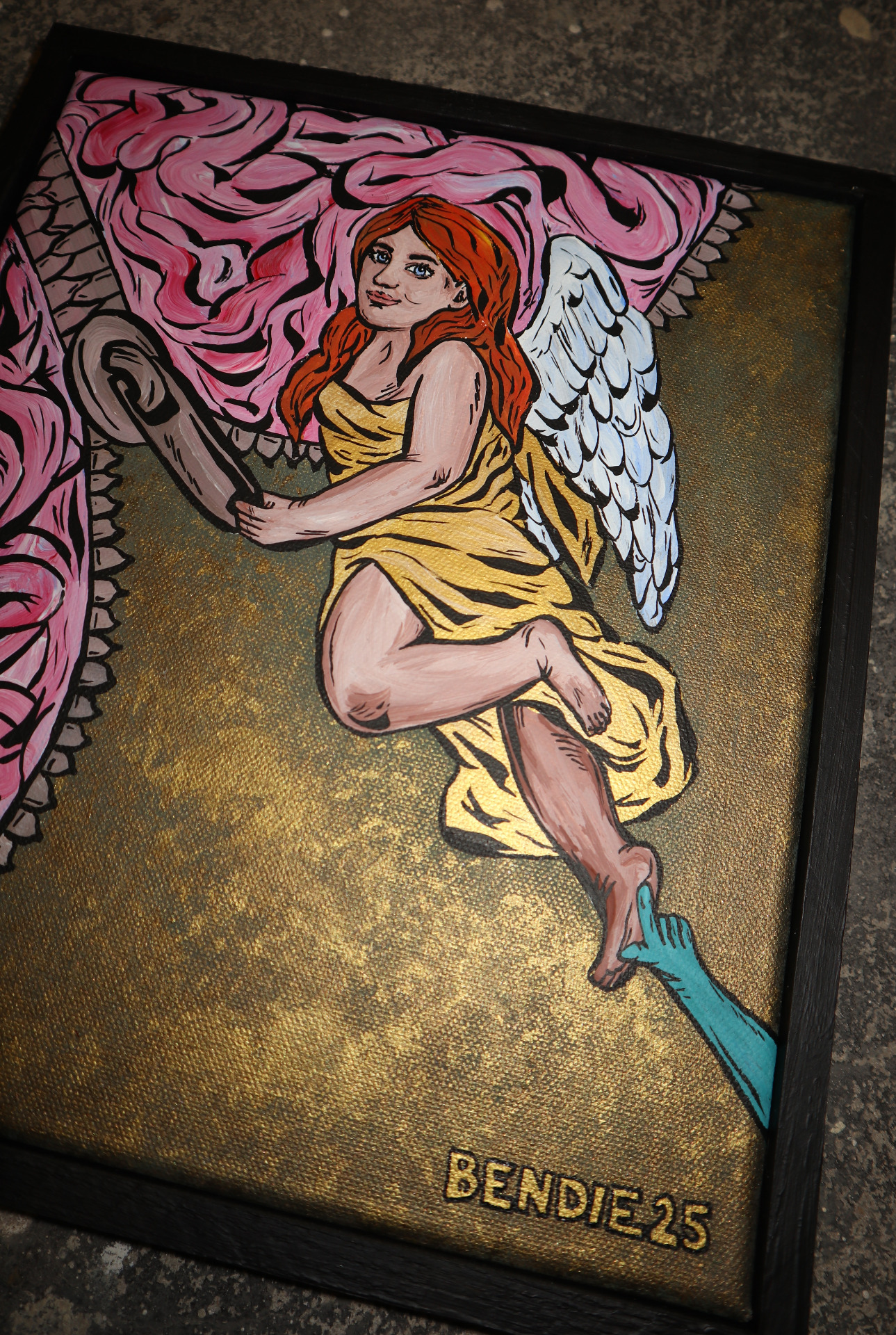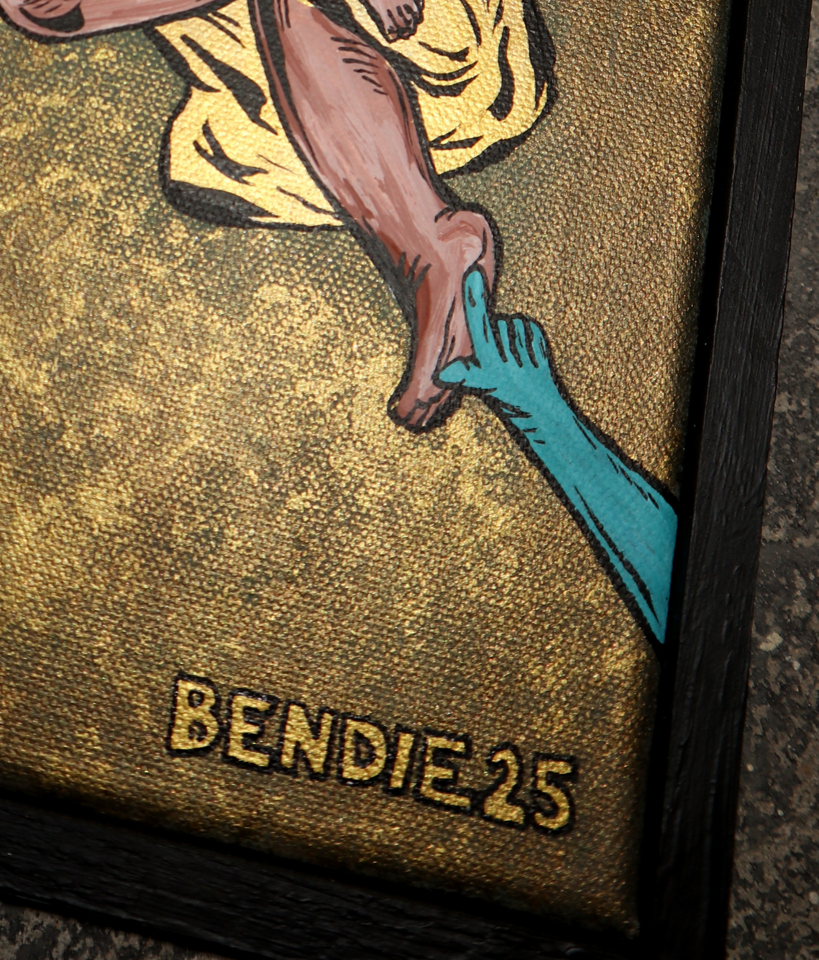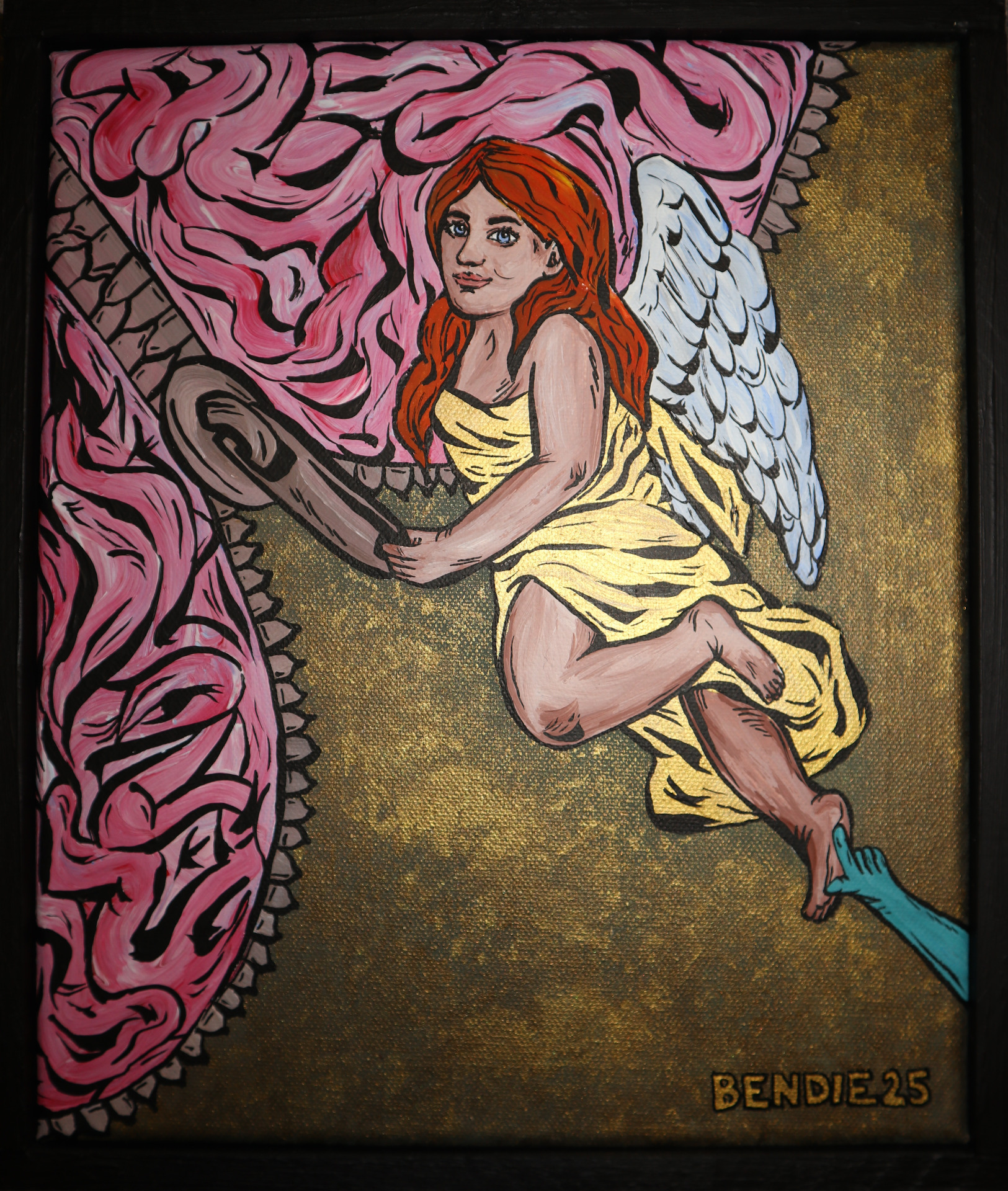 A painting titled Bendie. The name Bendie was created in 2024 as a result of the combination of talents of two people – Klaudie Švrčková and Benedikt Heczko.