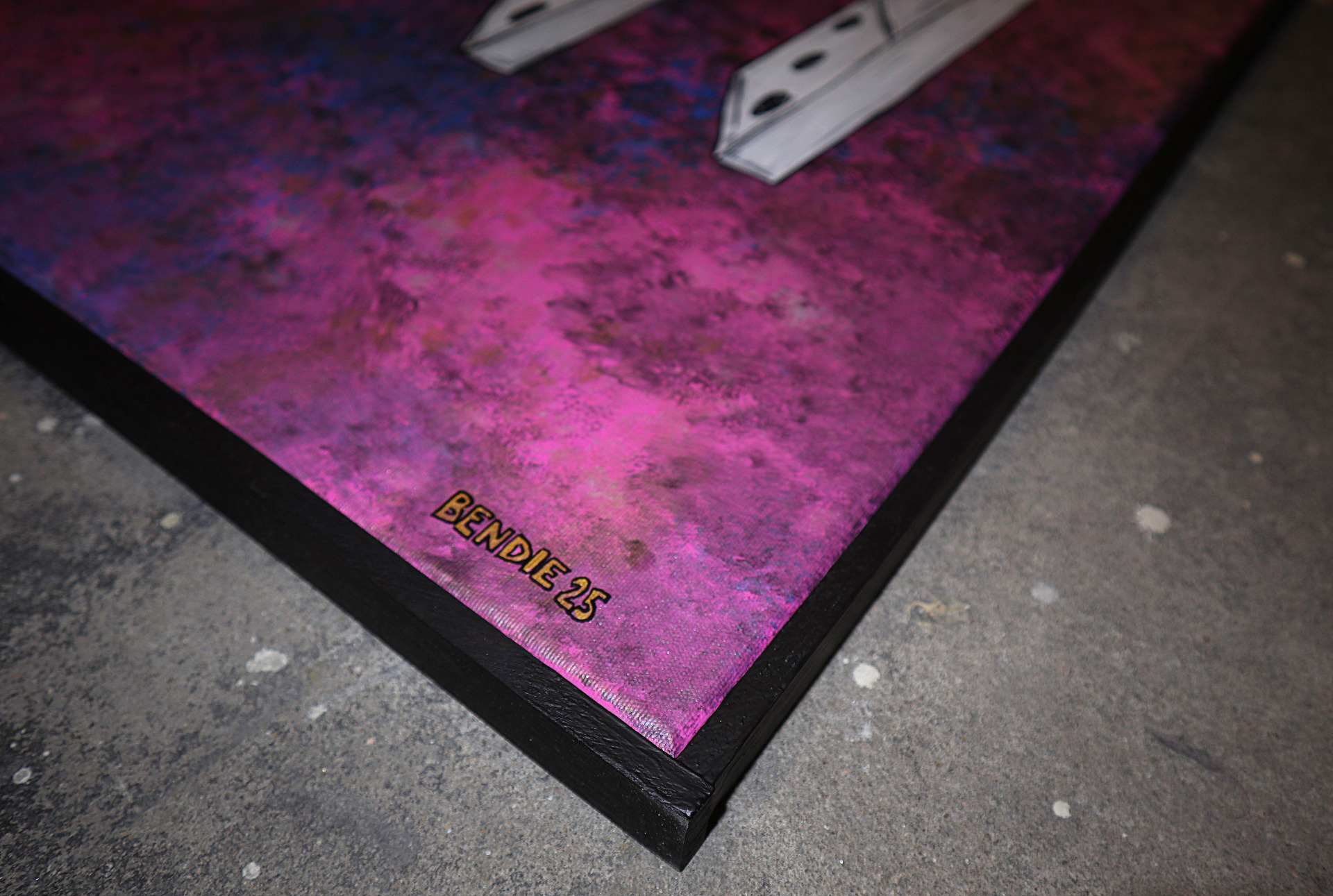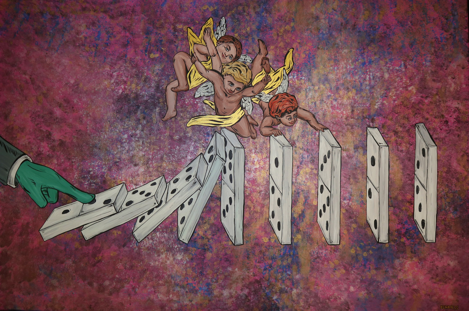 Obraz malovaný pod názvem Bendie. Označení Bendie vzniklo v roce 2025 jako výsledek spojení talentů dvou osob – Klaudie Švrčkové a Benedikta Heczka.