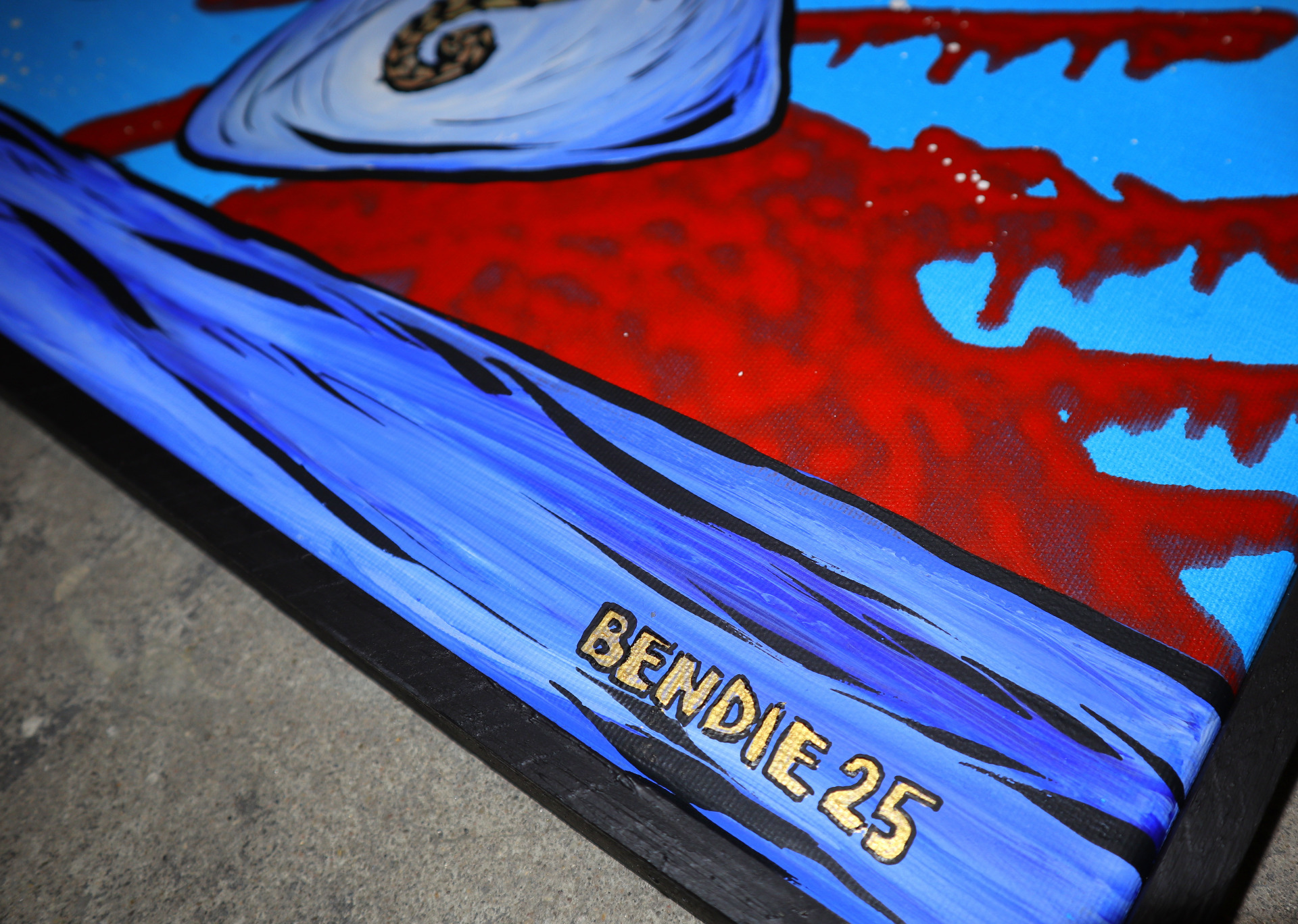Obraz malovaný pod názvem Bendie. Označení Bendie vzniklo v roce 2025 jako výsledek spojení talentů dvou osob – Klaudie Švrčkové a Benedikta Heczka.